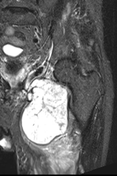 This is the second most common type of primary bone cancer, particularly over the age of 40. It often develops from normal cartilage cells or may occur in patients with pre-existing benign cartilage tumours eg. enchondromas, multiple osteochondromas, Ollier or Maffucci syndrome. Most occur in the femur, humerus, pelvis and around the knee but can occur in any bone. Most patients are treated with surgery alone as these are generally not responsive to chemotherapy or radiotherapy.